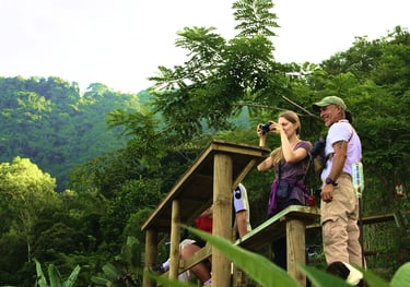 The next morning, wake up to a magical sunrise and go on a Birdwatching Tour from 6:00 AM to 9:00 AM. Explore the wild jungle and spot vibrant birds, with binoculars included.